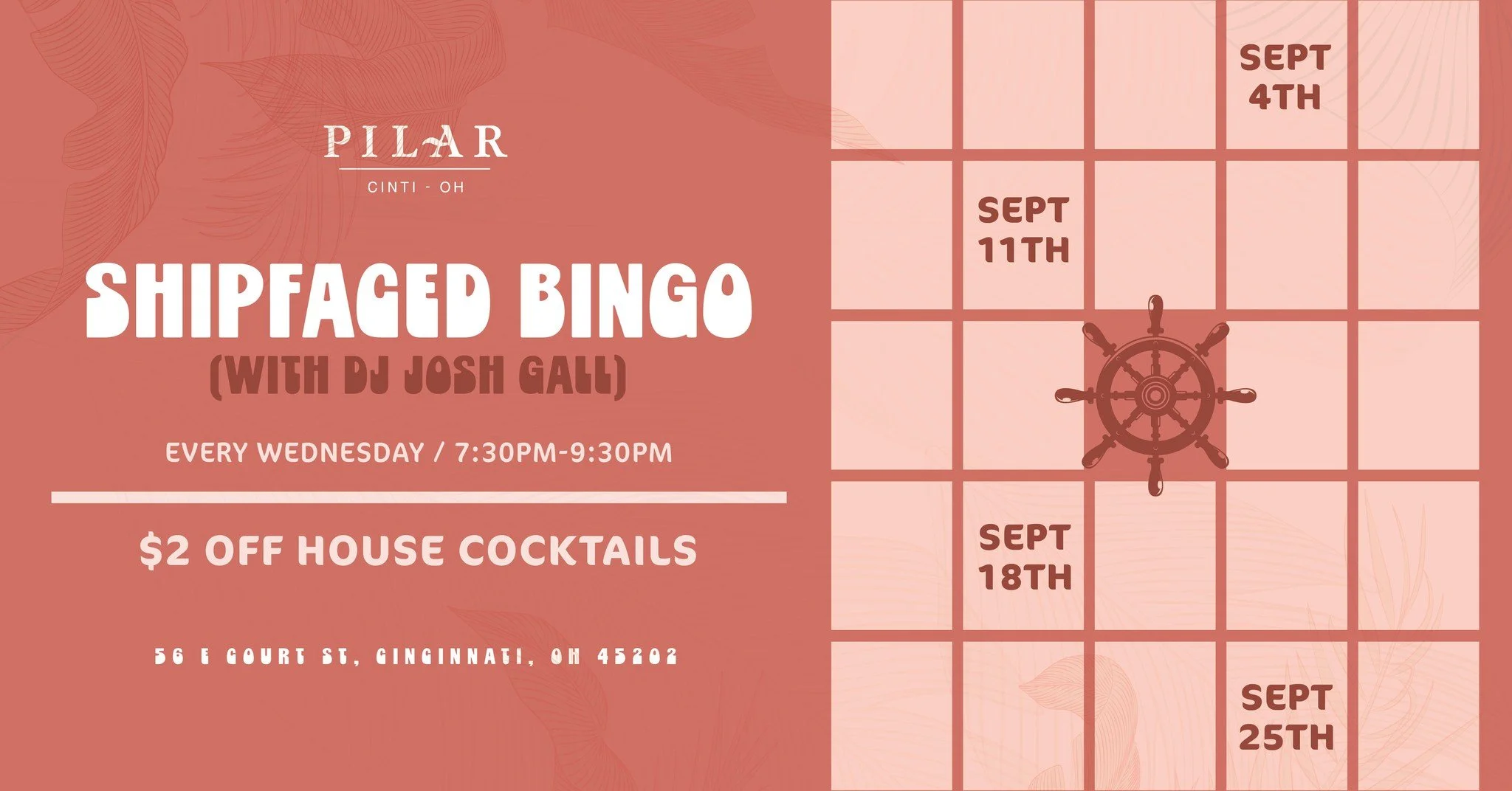 Dive into Pilar for "Shipfaced Bingo" with DJ Josh Gall every Wednesday from 7:30pm-9:30pm.