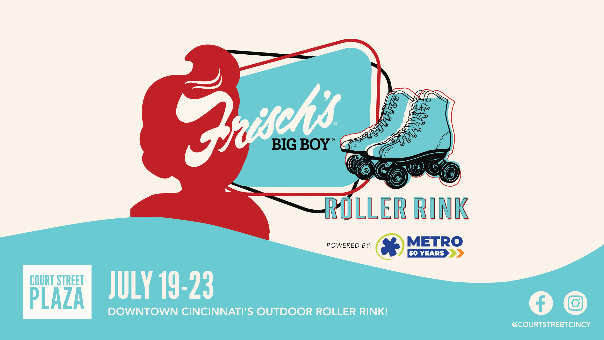 The Frisch's Mobile Roller Rink Powered by Metro returns to Court Street Plaza June 14-18, July 19-23, and September 6-10!